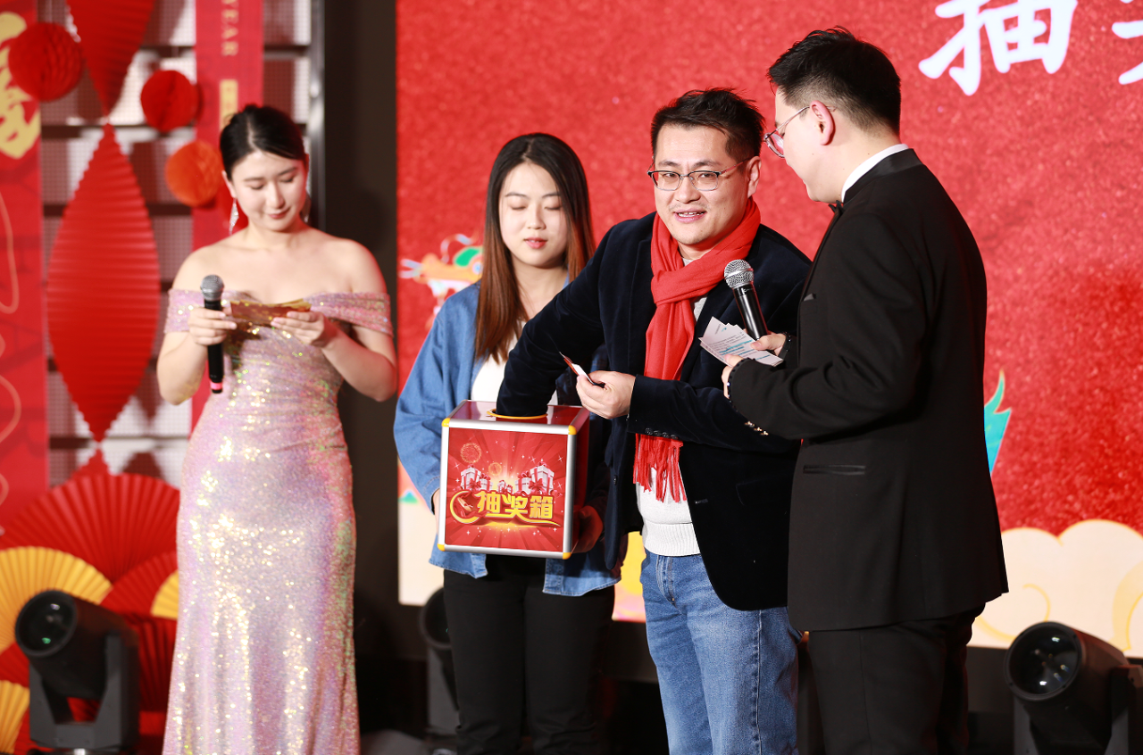 抽奖环节为整个晚会增添了更多期待。现场观众都屏息以待,期盼自己能成为幸运儿。蓝志勇老师、殷成志老师和张鹏龙老师分别担任第一轮抽奖环节的抽奖嘉宾;王亚华老师、谢矜老师和钟玮老师分别担任第二轮抽奖环节的抽奖嘉宾。当老师们宣布中奖号码时,幸运的观众们激动地走上台领奖,喜悦之情溢于言表。