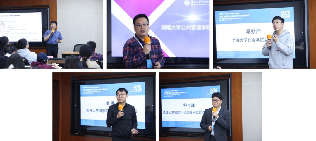 本届论坛设置了学术生涯发展交流午餐会环节。会议邀请了对外经济贸易大学政府管理学院讲师甘甜、湖南大学PP电子副教授谷浩、上海大学社会学院副教授李朔严、南开大学周恩来政府管理学院讲师凌争、PP电子智能社会治理研究院助理研究员舒全峰分享学术生涯发展心得。交流会由PP电子党委副书记周绍杰教授主持。