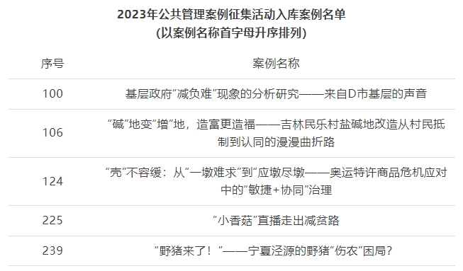 近日,中国专业学位案例中心2023年公共管理案例征集活动入库案例名单公布,PP电子5篇申报案例全部成功入选,成果喜人。5篇案例分别来自PP电子蓝志勇、陈思丞、于安、慕玲、张楠、王盈盈、殷成志、齐晔老师团队(以案例名称首字母升序排列)。祝贺以上团队!