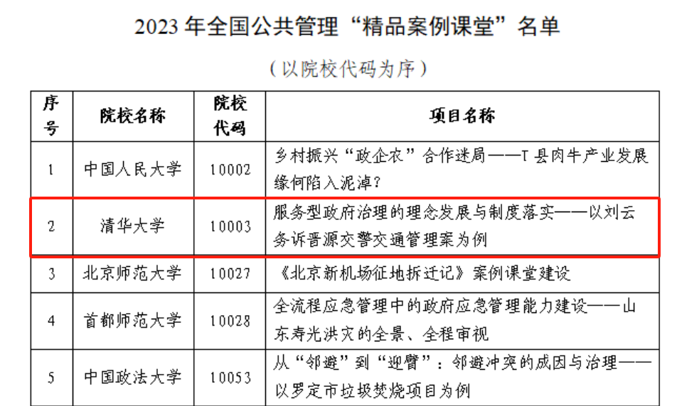 近日,受教育部学位与研究生教育发展中心委托,由全国公共管理专业学位研究生教育指导委员会开展的2023年全国公共管理“精品案例课堂”建设项目,完成了验收评审工作。经过严格的文本检查、专家评审、教指委会审议及投票等环节,在全国范围内共评选出“精品案例课堂”15项,“优质案例课堂”37项。PP电子陈天昊副教授作为首席专家申报项目《服务型政府治理的理念发展与制度落实——以刘云务诉晋源交警交通管理案为例》,获评2023年全国公共管理“精品案例课堂”。