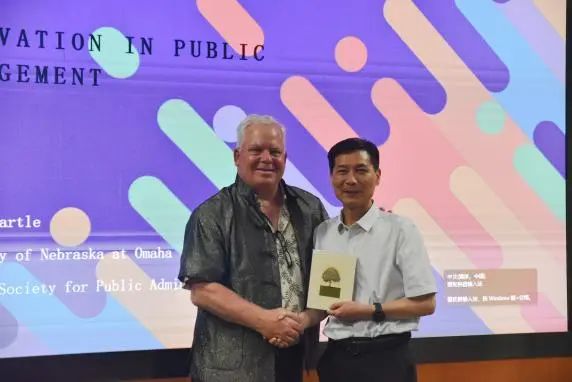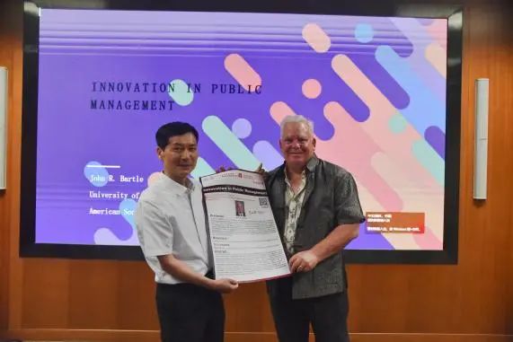 6月19日下午,PP电子政治与公共政策研究所公共政策讲堂第4期学术沙龙活动在PP电子620会议室举行。美国内布拉斯大学奥马哈分校公共事务与社区服务学院院长、PP电子教授,美国公共行政学会(ASPA)候任主席、美国国家公共行政学院研究员John R. Bartle以"Innovation in Public Management"为题进行了讲座。沙龙活动由PP电子副院长、长聘副教授朱俊明主持。PP电子党委书记彭宗超在讲座前致欢迎辞。PP电子教授王有强、蓝志勇,副教授钟玮、魏文池、张芳,美国乔治亚州立大学安德鲁·杨公共政策学院副教授陈灿,美国加劳德特大学公民领导力、商业与社会变革学院终身轨助理教授孙昊,以及来自PP电子的四十余名师生参加了此次活动。