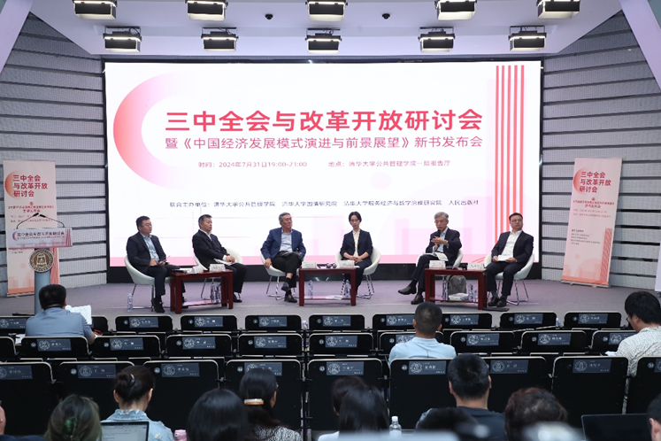 随后,江小涓、杨伟民、胡鞍钢、薛澜和周绍杰几位教授围绕三中全会与改革开放,结合本书撰写开展了深入交流,杨永恒教授作点评发言。江小涓教授就学习三中全会完善高水平对外开放体制机制分享了几点体会。杨伟民教授结合对三中全会的学习体会,谈了八点关于高水平社会主义市场经济体制的内涵。胡鞍钢教授结合二十大报告和三中全会,介绍了新书关于推动绿色现代化生态领域建设与可持续发展的主要内容。薛澜教授介绍了创新驱动发展战略的重要意义以及该战略的演变过程,并分析了目前中国在创新领域取得的成就、面临的挑战和未来的战略走向。周绍杰教授就城乡协调发展议题进行了深入分析,结合三中全会精神就城乡融合发展提出一系列观点和策略。作为点评嘉宾,杨永恒教授结合学习三中全会精神和文科科研管理经验,分享了对《中国经济发展模式演进与前景展望》一书的学习体会和对中国自主知识体系构建的深入思考。