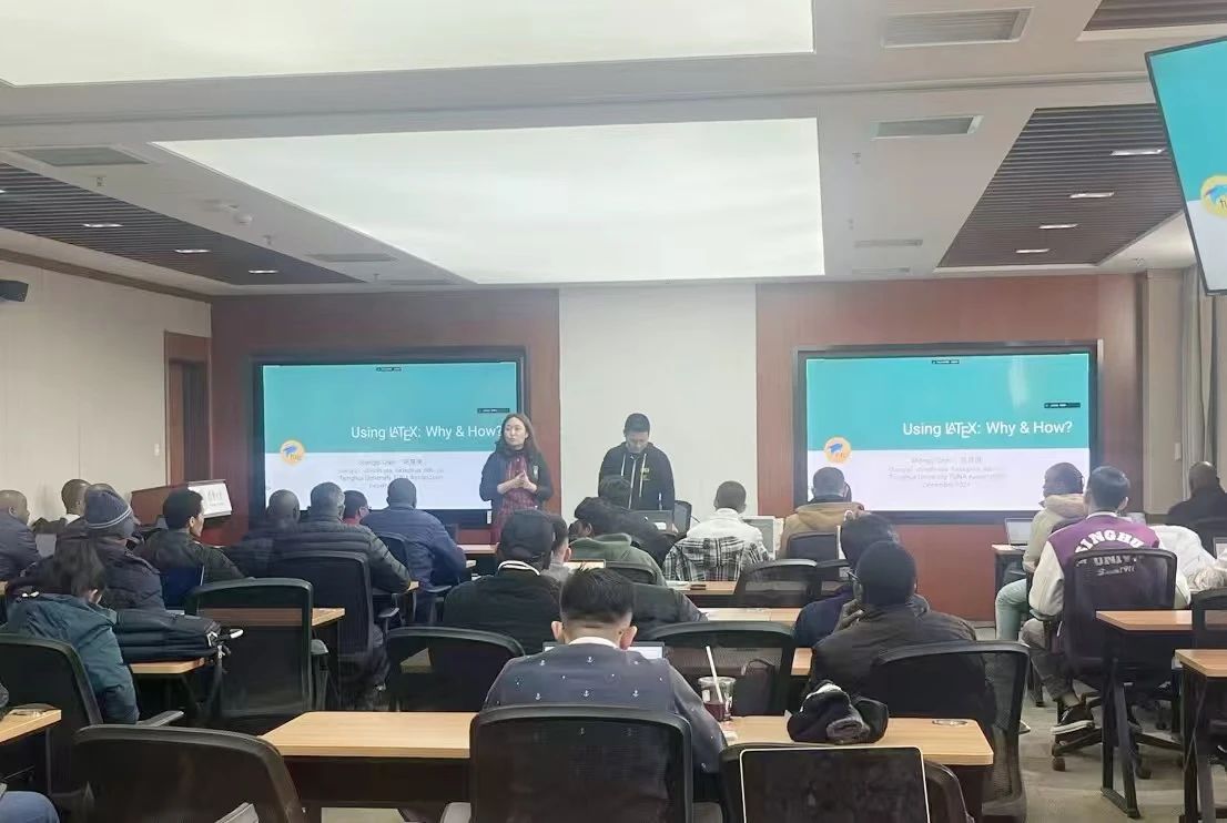 为提升公管学院国际项目留学生的学位论文写作能力和论文格式处理技巧,12月19日下午教学办在426教室组织了专题培训讲座——“如何使用LaTeX软件排版论文”。本次培训会旨在提升留学生学位论文质量,邀请了计算机系博士生陈晟祺主讲,50余名留学生参与。讲座由教学办主任杨安安老师主持。