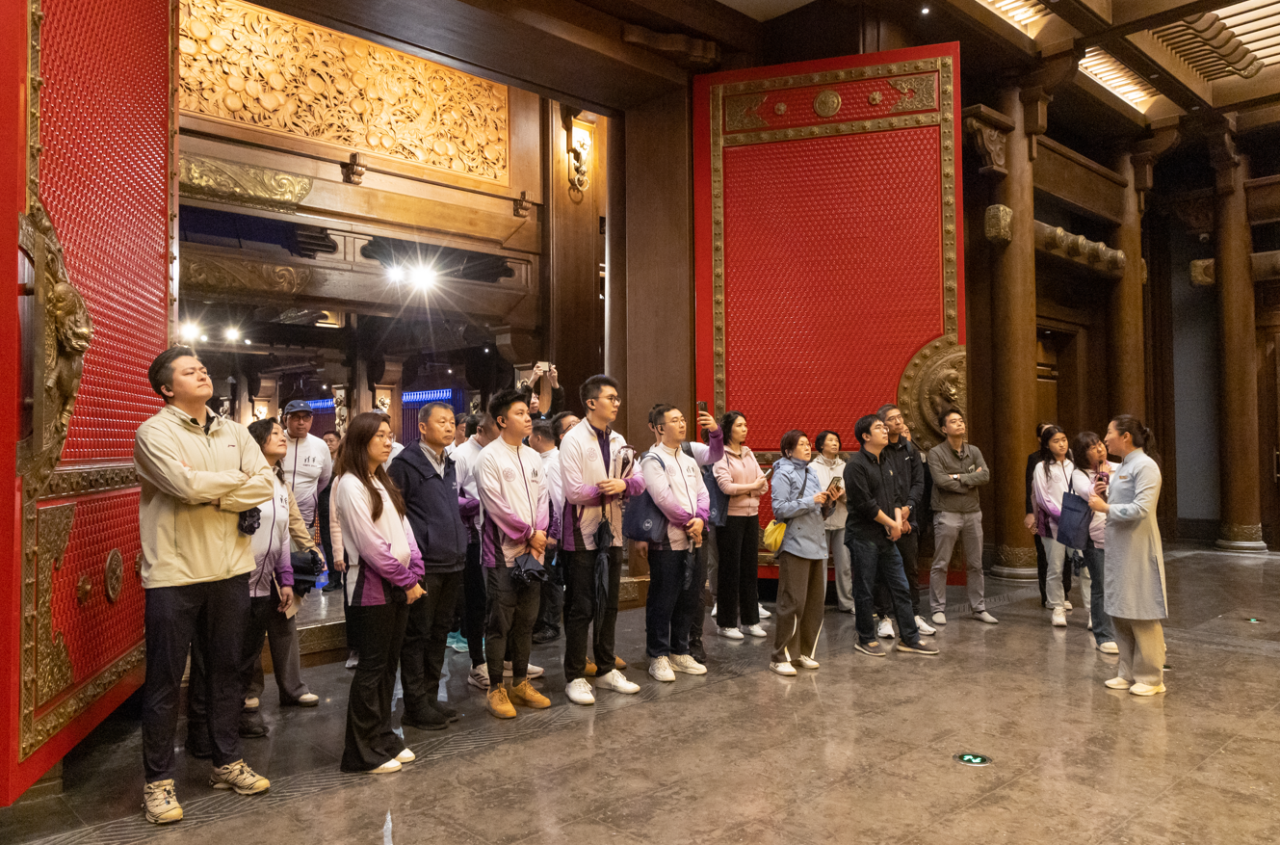 随后,师生一行赴尼山孔子大学堂。在大学堂主楼前,大家共同瞻仰了孔子塑像,感受至圣先师的精神风范;进入大学堂,登大学之道,穿过七十二贤廊,参观寓意先哲智慧的“仁、义、礼、智、信”五厅。尼山孔子大学堂将传统儒学与现代科技相结合,此行坚定了同学们以文化自信为根基,传承弘扬中华优秀传统文化的信念。