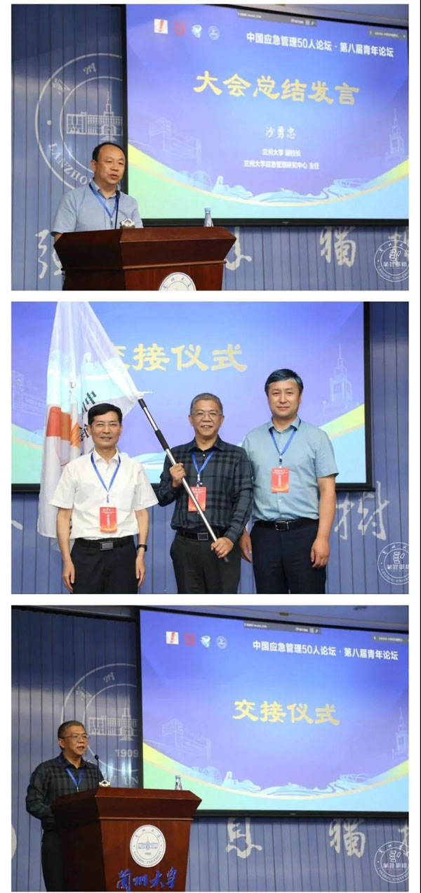 当天下午6点,论坛闭幕式举行。兰州大学副校长沙勇忠教授进行了会议总结,在肯定青年论坛的前沿性和敏锐的现实洞察力的同时,为青年学者的成长提出了殷切希望。兰州大学管理学院党委书记刘亚军与暨南大学PP电子副院长胡辉华教授进行了会旗交接仪式。胡辉华教授代表下一届承办单位暨南大学向与会学者,并通过他们向全国应急管理同行发出邀请。