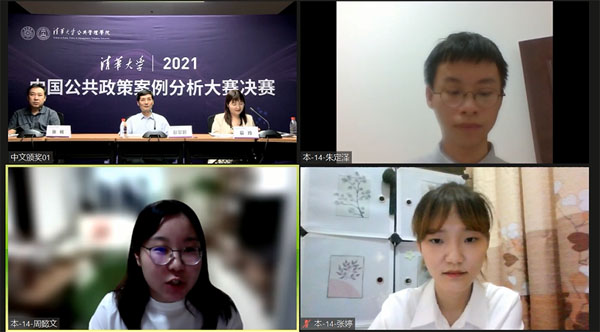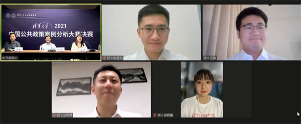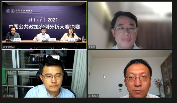 16支本科生队伍围绕外卖平台算法伦理、文化生态银行、农村基层党组织引领乡村治理、公益性公墓建设、长江渔民禁捕退捕政策热点问题进行了现场展示和深入分析。决赛现场三位评委专家——清华公管学院副院长邓国胜教授、清华公管学院殷成志副教授、吕孝礼副教授,分别就参赛队伍的案例展示与分析提出问题,选手们结合前期丰富的调研成果、扎实的专业知识、创新的学术观点进行了现场作答。
