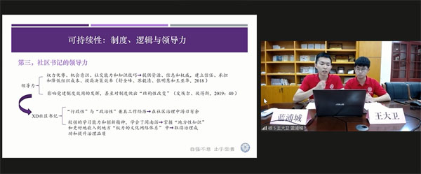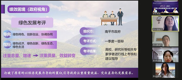 随后,硕士生组和本科生组决赛同步开始。硕士组评委由清华公管学院副院长王亚华教授、清华公管学院周源副教授、张楠副教授担任。16支硕士生队伍围绕水污染治理、少数民族地区乡村振兴、党建引领社区治理、农村风沙治理、互联网舆情监督、“第一书记”助力脱贫攻坚、公租房配建政策等社会前沿和热点问题,精彩展示和深入分析,并回答了三位评委提出的问题。