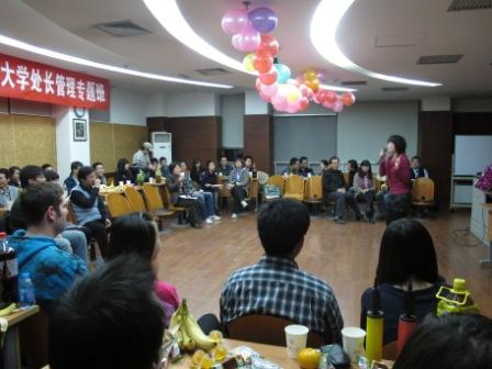 院长薛澜致开幕辞,他首先用幽默风趣的言辞表达了对所有同学的美好祝愿;院党委副书记谢矜和沈群红副教授也向全院男生送上了节日的祝福;随后,薛澜老师与谢矜老师、汝鹏老师共同开启了香槟酒,晚会在大家共同举杯的欢呼声中拉开帷幕。活动由“颁奖典礼”、“抢板凳”、“猜歌名”、“博饼”等一系列游戏组成,互动中,男生们感受到了同学间深厚的友谊和大家庭的温馨,伴随着同学们的笑声和欢呼声,晚会现场高潮迭起。现场选举王天雨同学为第三届“公管先生”。最后,在场所有男生都发表了自己的男生节感言,表达对学院及女生们精心策划的感谢。整台晚会在大家共同分享节日蛋糕的温馨氛围中落下帷幕。