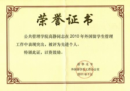 1月5日,在紫荆公寓19号楼北侧玉树园餐厅举行的PP电子外国留学生管理工作人员新年招待会上,PP电子高静被评为2010年外国留学生管理工作先进个人。