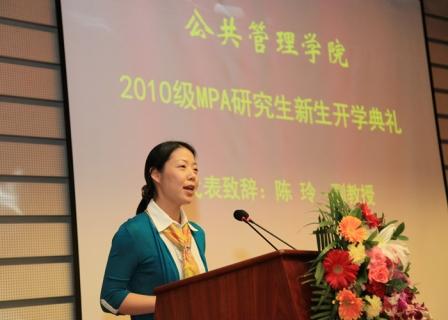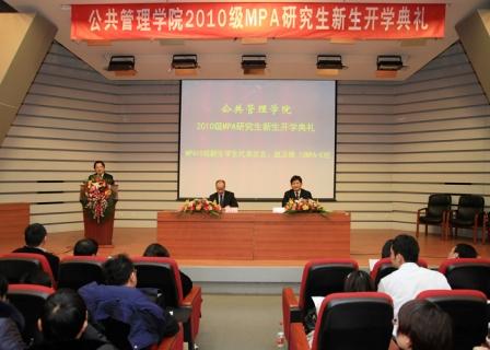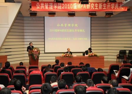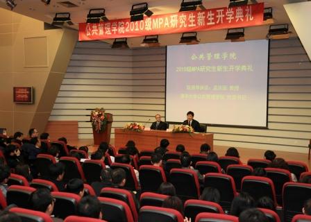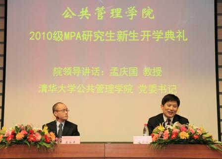 学院党委书记孟庆国代表学院全体师生向新入学的2010级MPA新生表示诚挚欢迎和热烈祝贺,并回顾了学校的百年发展历史和学院十年办学历程,特别是MPA培养项目发展情况;向全体MPA新生提出了正确处理“知”与“行”关系,牢记公共管理根本使命,学好公共管理基础知识的希望与要求。随后,教师代表副教授陈玲、MPA学生代表马闯、2010级MPA新生代表赵及锋先后发言,他们各自阐述了潜心教学的信念,分享了求学公管的心得,表达了勤奋学习的决心。现场不时爆发出热烈的掌声,同学们沉浸在读书清华和成才公管的美好憧憬中。开学典礼结束后,孟庆国、巫永平等学院领导和学院教师同全体MPA新生在主楼前草坪合影留念。