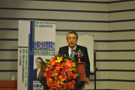 加藤進在公管学院报告厅发表题为《世界剧变中的企业领导力》的讲演。从住友商事的经营理念和综合力出发,基于自身经验提出了领导力培养的五个途径:指明目标及思想和做法、使当事人具有主人翁意识、形成综合里、促进业务模式的转换、率先垂范。演讲的最后,加藤先生引用了《韩非子》中的话语,将发挥领导力的最高境界形容为“下君尽己之能,中君尽人之力,上君尽人之智”。来自继续教育学院和河北研究院的地方进修官员、公管及学校其他院系的师生200余人听取演讲。