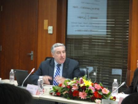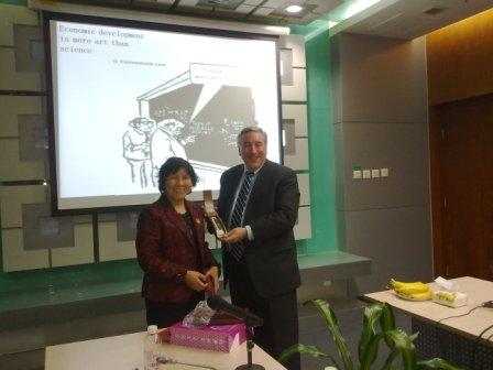 希尔教授先围绕论坛主题做主题演讲,运用大量的数据,使用计量经济学的方法,阐明了以技术为基础的与经济发展相关的自然科学和工程学科的学术水平对区域发展的影响;并且运用实证分析的结果,提出了大学参与区域经济发展的战略规划框架,该研究框架将大学视为具有多种产品的公司,并检验这些产品与大学所在区域经济的相关性。希尔教授的讲座严谨、深入,同时又不失风趣幽默。尤其提到美国一所大学目前正基于该研究报告制定战略规划引起了听众的兴趣,20多位师生就感兴趣的问题与希尔教授进行了热烈的讨论。