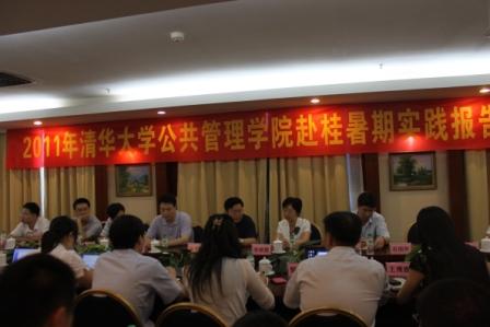 总结报告会由科技厅的钟会超院友主持。在广西壮族自治区公共部门任职的吴宇雄、曾纪芬、张显、李银霞、石国怀、李朝辉等七位院友,南宁市委组织部副部长肖宁,PP电子广西校友会秘书长黄永宁,以及PP电子研工组汝鹏、刘近文老师参加了总结会。此外,参加博士生暑期必修环节的智强等5位博士生同学也出席座谈会。