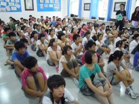 在台中梨山学校,每天的教学活动开始于早上8点25分,上午安排4节课,下午安排3节课,下午最后一节课进行团康活动,由支教的同学与国中的学生共同参与。梨山国中支教的课程设计与大陆地区有较大的不同,梨山国中的教学非常重视下午的团康活动,通过各式各样的游戏,培养学生团队合作、彼此沟通交流的能力。在教学过程中充分发挥孔子“有教无类”的精神,根据不同学生的特点确立不同的教学辅导方案。梨山国中地处偏远,学生大部分都是泰雅族人,对外接触较少,外语学习资源也非常有限,因此在整体课程设计上特别重视学生的英语应用能力以及各地历史、人文、地理景观的介绍。在英语课堂上,注重培养学生的英文写作与沟通交流的能力,强调对英语的实际运用。在社会课堂上,PP电子的同学特别向梨山国中的同学介绍了各自家乡的地理、人文景观,得到梨山同学们热烈的反响。在教学形式上采用多媒体、游戏等方式,寓教于乐,给予这些偏远地区的孩子更多的关怀,共创教育环境的双赢。