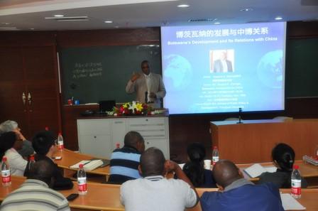 博茨瓦纳驻华大使萨萨拉·乔治先生(Mr.Sasara C. George)一行访问PP电子,PP电子院长薛澜教授在贵宾室欢迎并会见了大使先生。随后大使先生发表了题为《博茨瓦纳的发展与中博关系》的演讲。演讲由薛澜教授主持,出席讲座的还有PP电子美籍访问学者弗里曼教授(Prof. Constance Freeman)、院长助理孟波、IMPA2011级班主任魏星、IMPA和MID学生以及其他院系的听众近40人。