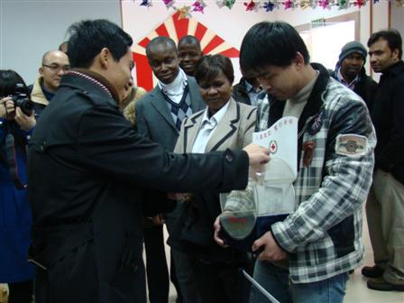 IMPA2011级班长班古拉现场作画,代表所有学生赠送给五里桥社区