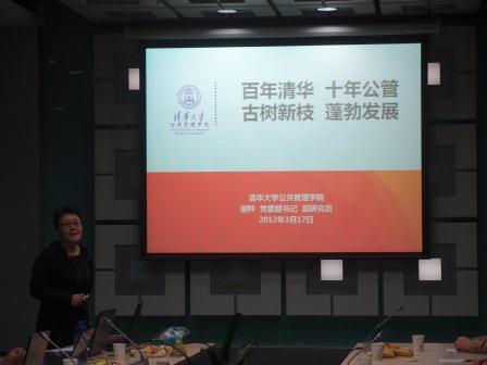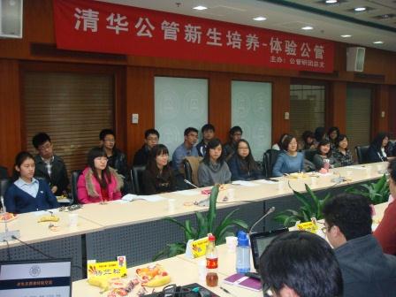 谢矜进行主题介绍,她首先用十六个字概括了PP电子在PP电子中的发展特点:“百年清华,十年公管,古树新枝,蓬勃发展。”随后就教学、科研、师资力量、机构设置等基本情况和就业两个方面对学院进行了全面的介绍。最后,谢老师寄语大家:“正心修身以明德,经天纬地而为公。”