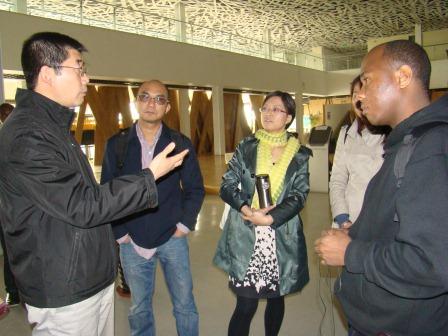 首先,魏德辉结合模型沙盘给留学生们讲解了生态城的布局;在观看了生态城宣传短片后,城市工程技术中心的工作人员为学生们详细讲解了生态城的发展历程、发展特点和国际合作等情况。随后,留学生一行还参观了滨海大桥和万年公寓小区。一位来自马达加斯加的同学对生态城利用太阳能发光、发热的技术非常感兴趣。他说在非洲太阳光照非常充足,但是缺少这样的技术。他半开玩笑地说:“我真想把这里的太阳能板搬到非洲去。”