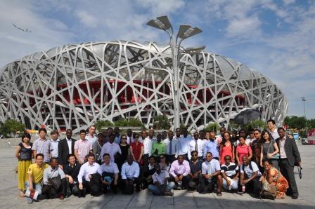 随后,中冶安排留学生们参观了他们最重要的工程项目之一—鸟巢,之后还带领大家参观了水立方。当看到如此庞大、结构复杂但又设计美观的两个建筑时,学生们不住地称赞,赞叹中国的建筑美学和高科技使不可能成为了可能。