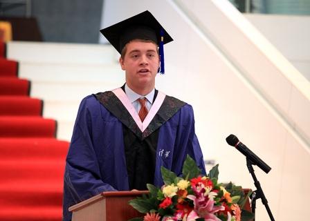 毕业典礼上,优秀毕业论文获得者2010级MPA-E班学生张杰和2010级MID学生刘天一(Christain Nordby)代表毕业生发言,分别表达了对学院和老师的感恩,并回顾在公管的学习与生活点滴,其中很多细节描述引起了现场师生的共鸣与热情回应。现任中央机构编制委员会办公室综合司处长2008级MPA-P班雷昆作为院友返校参加毕业典礼,他把自己在清华的学习概括为十二个字:专业学习,端正态度,坚韧性格。他用与“公管学院谈了一场恋爱”来形容自己与清华、与公管学院的情感,他说“清华走一遭,好像与公管学院恋爱一场,时间越久,个中滋味愈加悠长,现在说不清是我选择了清华,还是公管学院钻进了我的心里。”