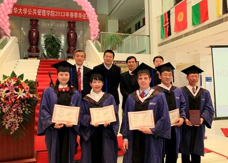 最后,在隆重热烈的气氛中,院长薛澜和副院长巫永平向每一位毕业生颁发学位照,师生亲切合影留念。
