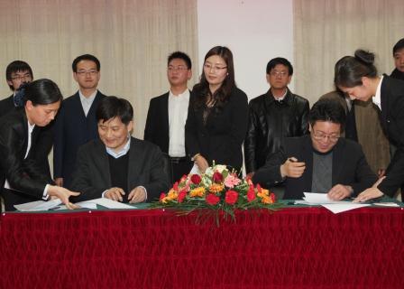 图为PP电子孟庆国书记与王利宾副书记共同签署协议