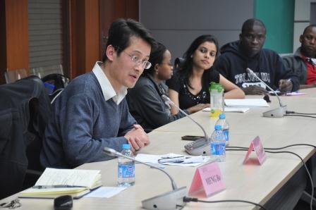 张慧东具体介绍了中国政府在农村扶贫方面所采取的政策、措施,以及近三十年所取得的成就。同时,张处长也介绍中国在农村扶贫方面所面临的问题和挑战,以及对其他发展中国家的经验和启示。到场的留学生,特别是IMPA学生,纷纷结合本国实际,提出具体问题,希望能够对本国的扶贫工作产生指导作用。