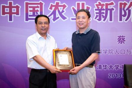图为陈锡文为蔡昉颁发“清华三农讲坛”纪念证书 王皓冉 摄