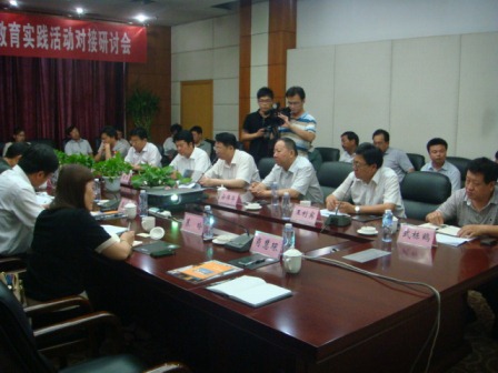 图为调研组与沧州市和肃宁县领导举行“四个覆盖”与党的群众路线教育实践活动对接研讨会