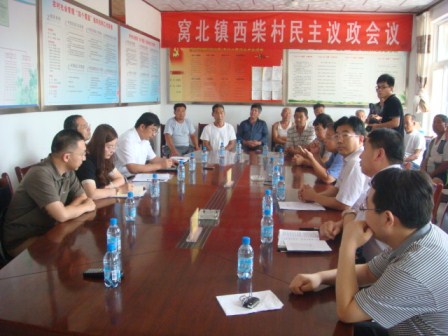 调研组来到窝北镇西柴村,与村民代表、红白理事会理事、村监会成员、治安巡逻队负责人、村支书等人举行座谈。村干部和村民都积极发言,畅谈着实施“四个覆盖”之后村民和村庄发展的变化:从前收入低,如今参与农村经济合作组织的村民们经济条件变好了,收入显著提高了;从前的土路逐步变成平整的水泥马路;从前村容脏乱差,如今整洁有序、焕然一新,定点配备的垃圾桶培养了村民们的卫生习惯;从前村民的娱乐活动是打牌,如今村里修了全县第一的文化大院,村民平时跳广场舞、运动健身,精神面貌好起来了,还举办农民艺术节;从前村里不太平,如今村里的综治维稳队有80多位平安志愿者,村内的治安水平明显提高了。
