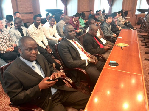 提问环节,当一名中国学生就中外学生交流一事提问时,根哥布总理专门提起了IMPA项目的两名纳米比亚学生摩西和索妮,希望他们能多与中国学生互动,促进交流。来自南苏丹的IMPA学生康德也结合中国企业在非洲投资和南苏丹的发展问题同根哥布总理进行了交流。