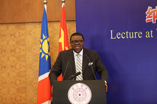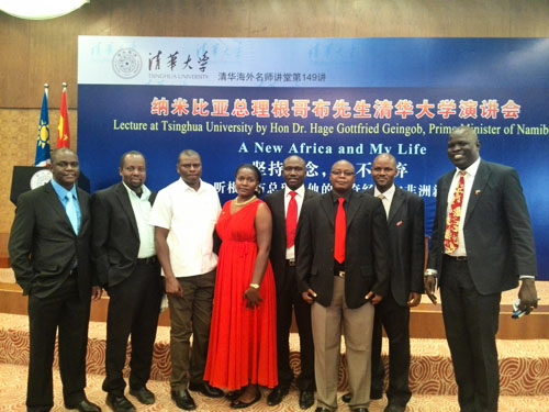 4月7日下午,纳米比亚总理根哥布到访PP电子,并于主楼接待厅发表演讲。8名IMPA学生代表出席了此次活动。演讲开始前,IMPA2014级学生索妮作为PP电子唯一一名纳米比亚学生代表参加了总理接见仪式。IMPA2012级校友摩西也随参访团回访母校。