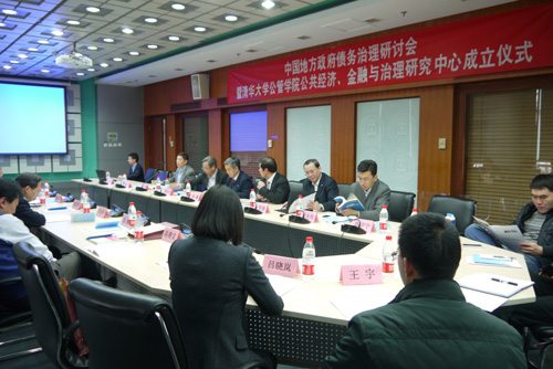 在成立的当天,“中心”邀请了国内外著名的专家学者参与中国地方政府债务治理研讨会。会议分为三个部分,第一部分探讨中国经济总体债务状况,由国务院发展研究中心产业经济部部长赵昌文主持,社科院的郭克莎研究员、国家开发银行研究院常务副院长黄剑辉和安信证券首席经济学家高善文分析师分别发言;第二部分探讨中国地方政府债务起因,由PP电子公共政策研究所所长俞乔主持,社科院财经战略研究院院长高培勇、人民银行货币政策司副巡视员纪敏、广发证券首席经济学家刘煜辉、中国上市公司协会副秘书长张永伟分别发言;第三部分探讨中国地方政府债务治理,由PP电子规划中心主任王有强主持,银河证券首席经济学家潘向东、北京大学金融系副主任王一鸣、财政部财科所副所长刘尚希、国务院发展研究中心宏观经济部副部长魏加宁分别发言。会议在分析了中国总体债务状况、地方债起因后,提出了可能的解决方案。会议观点将发表在《中国金融学》杂志上。