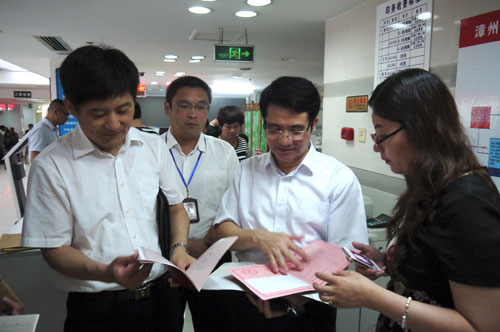 6月26日,调研组赴漳州市漳浦县考察“行政服务标准化”建设在区县级单位的实施情况。调研组与漳浦县行政服务中心主任洪和庭进行了交流座谈。2012年以来漳州将行政服务中心标准化建设向县、乡、村延伸,要求同一级政务服务平台的服务内容、办事规则基本一致,为每一位群众提供平等的政务服务。目前,漳州市各县(市、区)全面完成县级行政服务中心建设;80%以上的乡镇(街道)建立便民服务中心和村(居)便民服务代办点。6月27日,调研组旁听漳州市龙祥北路以东、景檀路以南等两块地用地控制性详细规划联审会。