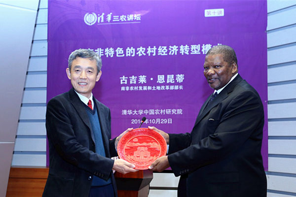 作为“清华三农讲坛”的首位外国演讲嘉宾,恩昆蒂主要介绍了南非经济的特点,回顾和展望了南非农村发展和土地改革的主要阶段,阐释了南非政府制定的“综合性农村发展计划”,并就如何发展农村生产力以及中国相关经验借鉴发表了看法。