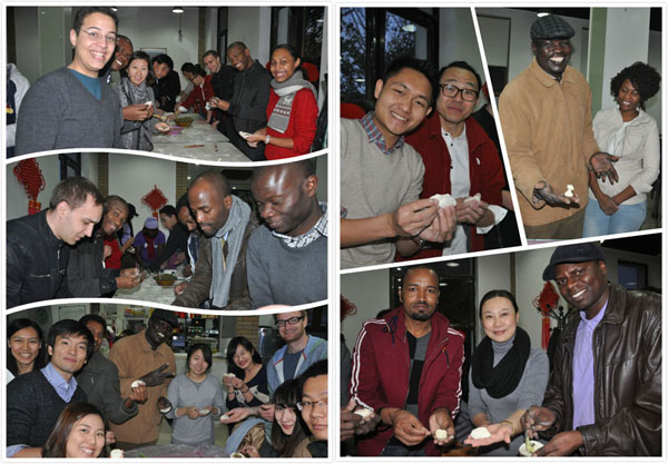 活动正式开始后,南园食堂的厨师们给大家介绍了包饺子的原料和制作方法,并亲自示范各个步骤,留学生们学习完要领后,就兴致勃勃地包起饺子来。一些学生还发挥自己的创意,包出形状各异的饺子,展开了激烈的竞赛。随后,副院长孟波老师向留学生们介绍了中国的传统文化以及包饺子习俗的由来,并评选出了最佳创意饺子奖。