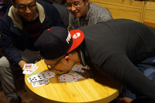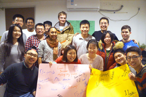 在咖啡厅轻松舒适的环境下,中外学生用汉语或英语交流,依次进行了自我介绍。随后的互动环节,所有同学随机分成两组,为自己的小组确定了队名,并在Don’t blow the king,M&M,Paper ball tossing三轮有趣的游戏环节中展开组间激烈的角逐。游戏环节将活动推向了高潮,一时间,欢声笑语,其乐融融。最后通过投票,来自韩国的14级MID Mia Lee和硕14班高渊被评为最佳搭档(Best Partner),二人还分别被评为本次活动的最受欢迎女生(Queen)和最受欢迎男生(King)。寻找语伴、文化交流和感情建设是此次活动的主题。活动结束后,每位同学都找到了自己的语伴,增进了彼此之间的交流和了解,也为留学生提高汉语水平、中国学生提高英语口语水平搭建了一个长久平台。临走前,同学们还在留言板上写下了自己的回忆和祝福。