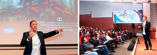 随后,赵昕先生做了 “创新——创造下一个惊世之作”(Innovation-Creating the Next Big Thing)的主题演讲。他根据自己的人生经历和工作经验讲述了创新对于企业的重要性。通过分享杜比的创新理念,他向台下观众传递了四个使企业能够获得成功的创新要素:一定能做得更好;自主探索奥秘;敢于冒险;用对人。为展示全球目前最新的音效技术,在演讲中,赵昕先生播放了两段杜比实验室最新完成且未曾公开播放的样片,引起了现场观众的一片惊叹。