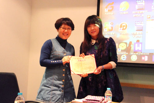 图为谢矜老师为云南支队代表颁奖。