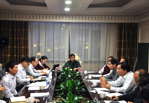 图为乌鲁木齐市相关部门领导与调研组开展的座谈会。