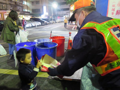 图为台北市小区居民定时定点投送垃圾。