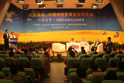9月16日上午,“大国基础——中国农村发展金秋报告会”在PP电子一层报告厅举行。本次报告会由中央人民广播电台中国乡村之声与PP电子中国农村研究院主办,以“阡陌逐梦——中国农业现代化探索录”为主题,分为报告发布、主题演讲、现场互动环节。农业部总农艺师、农研院学术委员会委员孙中华,国务院发展研究中心农村经济研究部部长、农研院学术委员会委员叶兴庆,科技部农村科技司副司长蒋丹平出席报告会并发表主题演讲。