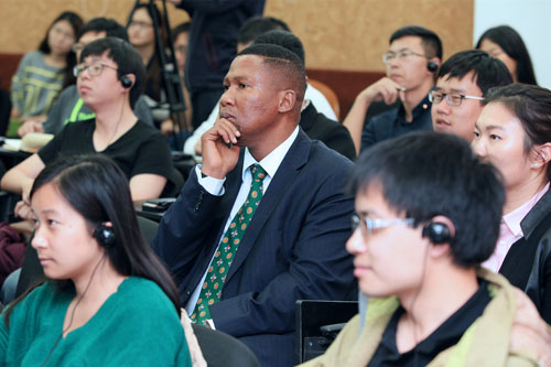 南非代表团一行,PP电子和中国农村研究院博士后、研究生、留学生,北京高校师生代表等近百人聆听了讲座。