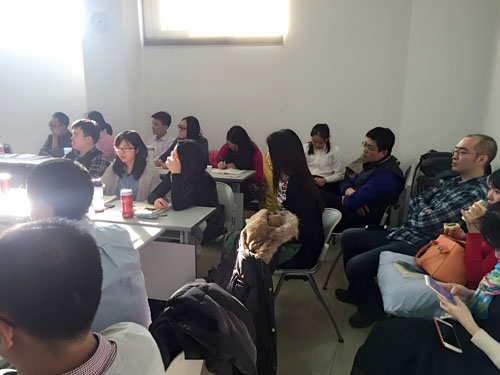 图为活动现场。殷存毅老师(左一),张严冰老师(右一)