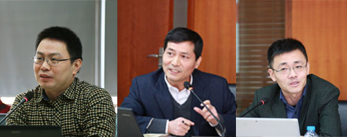 郑振清(左一)主持讲座,彭宗超(左二)、梅赐琪(右一)进行点评。