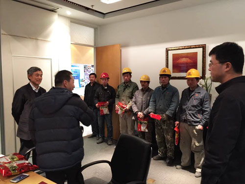 1月15日,学院开展寒假前安全工作专项检查。院长薛澜、党委书记过勇与学院分管行政工作的院长助理刘辉、行政办公室主任吴昊芳,以及物业相关工作人员等一起对大楼安全工作进行了巡视和检查,并对大楼六层加建项目工程施工人员和物业项目部全体人员进行春节前慰问,对他们在春节期间仍为学院工作坚守岗位、任劳任怨表示感谢,并对寒假期间的安全提出要求。