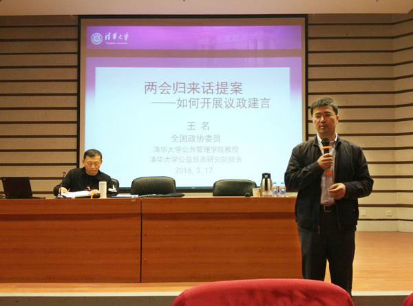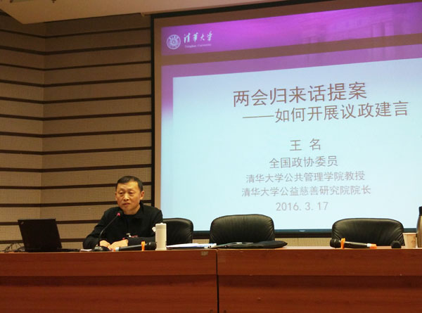 王名将他在2016年的17份提案分为往届提案的延伸、重点关注问题、社会关注热点以及与自己的研究有关的问题四类向大家进行了介绍。对于他最关注的慈善法,王老师认为该法的立法过程突破了以部门、机关立法为基础的构建方式,具有重要的创新意义,从国际范围来看也具有先进性和很多创新点。同时,王名认为“两会”的制度安排还有改进的空间,比如在讨论慈善法这类专业性较强的问题时,应在审议前有专业解释说明的过程,在制度上给委员学习专业化知识的机会和条件,从而作出更合理的决策。