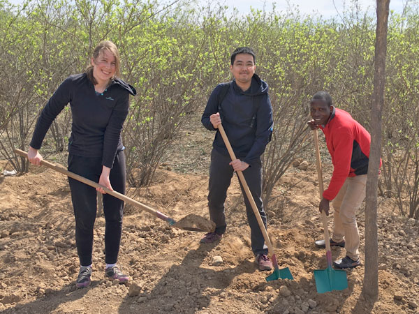 在志愿者和工作人员的引导下,同学们依次进行取锹、挖坑、种苗等活动。同学们对于植树热情高涨,纷纷表示此次活动很有意义,希望日后还能回来照看小树。植树环节结束后,中外同学一起进行了郊游,通过游戏的方式加深相互之间的了解与感情。