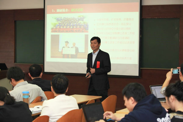 图为彭宗超副院长介绍学院博士生培养改革情况。