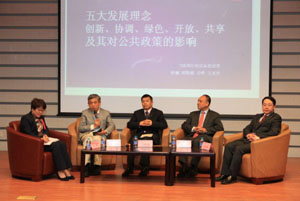 百余位院友齐聚公管报告厅,学院院长薛澜、胡鞍钢教授、齐晔教授、王亚华教授以《创新、协调、绿色、开放、共享五大发展理念及其对公共政策的影响》为题为院友们带来了一场精彩的“返校讲堂”。